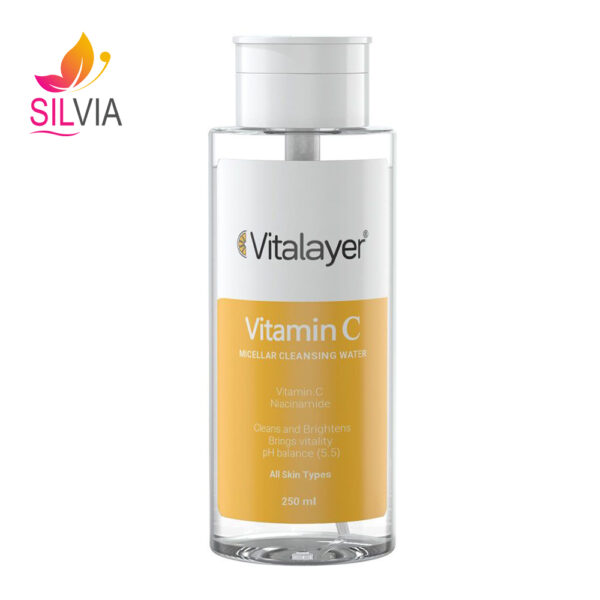این محلول حاوی مقادیر زیادی ویتامین سی است. این مواد خاصیت روشن کنندگی قوی دارد و مانع از ایجاد لک و رفع تیرگی های پوست میشود. مصرف پاک کننده میسلار ویتامین C ویتالیر گزینهای عالی برای روشن شدن انواع پوست است. وجود بیوتین در این محصول نیز باعث از بین رفتن آکنه ها و همچنین محو شدن لکههای پوستی میشود.